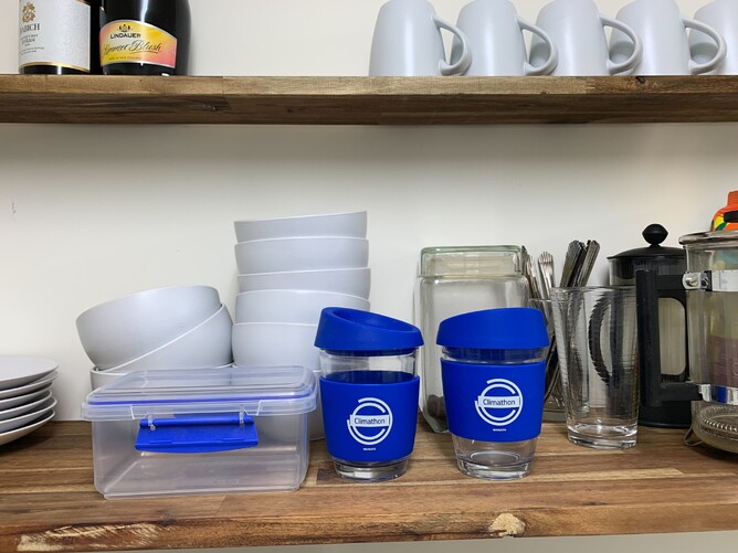 We all have rogue plastic containers and keep cups rattling around in a cupboard at home. How about bringing some of them to the office for a container library?